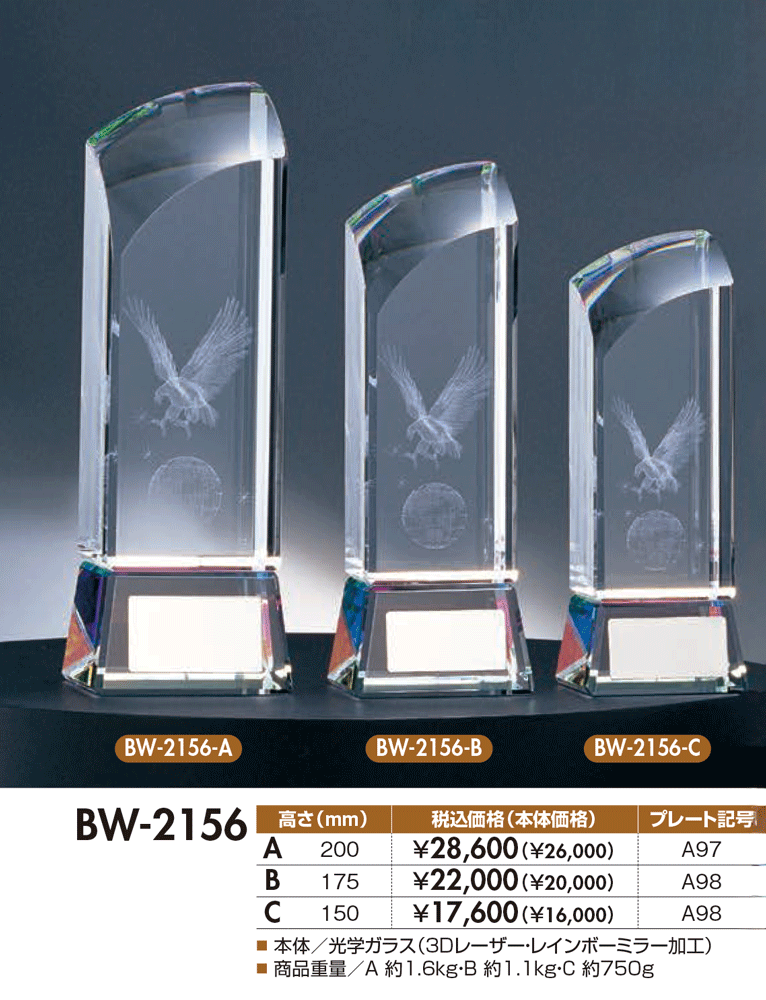 3Dイーグル/ワシを閉じ込めたクリスタルトロフィー BW-2156(旧:BW-2418) 【30%OFF】【文字代無料】