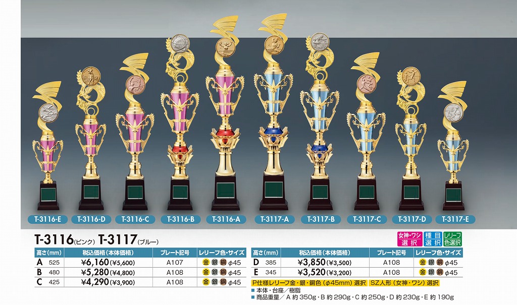 トロフィー T-3116(ピンク)、T-3117(水色)【30%OFF】