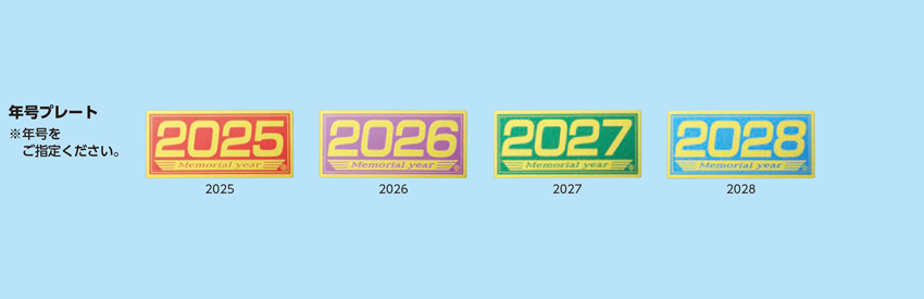 台座に年号(下にMemorial yearの文字入り)を大きく表現。