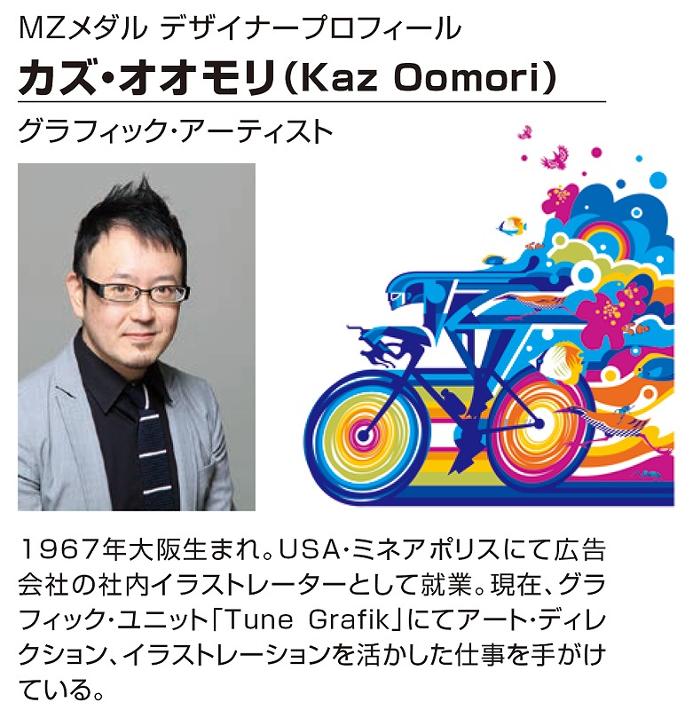 カズ・オオモリさんの躍動感あふれるタッチのデザイン表彰メダル。