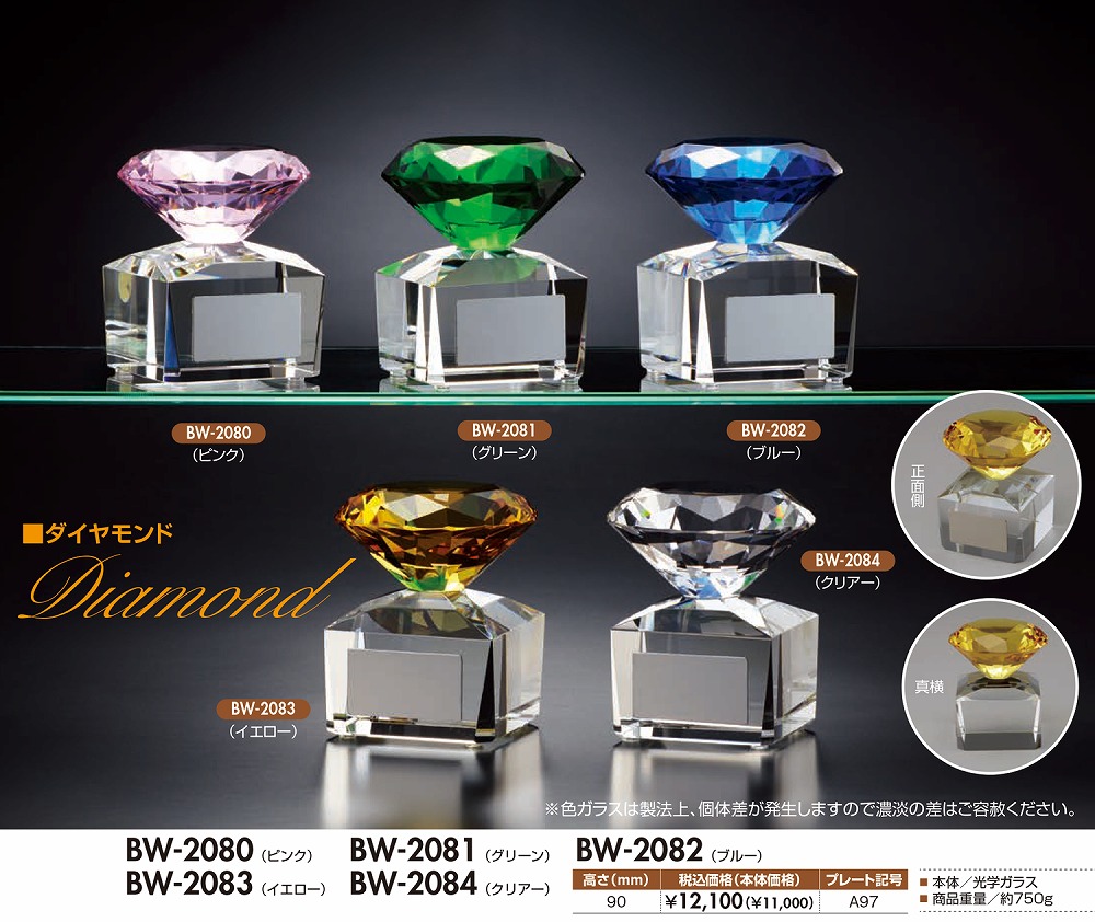 ダイヤモンド・カラー クリスタルトロフィー (5色 / BW-2080・BW-2081・BW-2082・BW-2083・BW-2084) 【30%OFF】