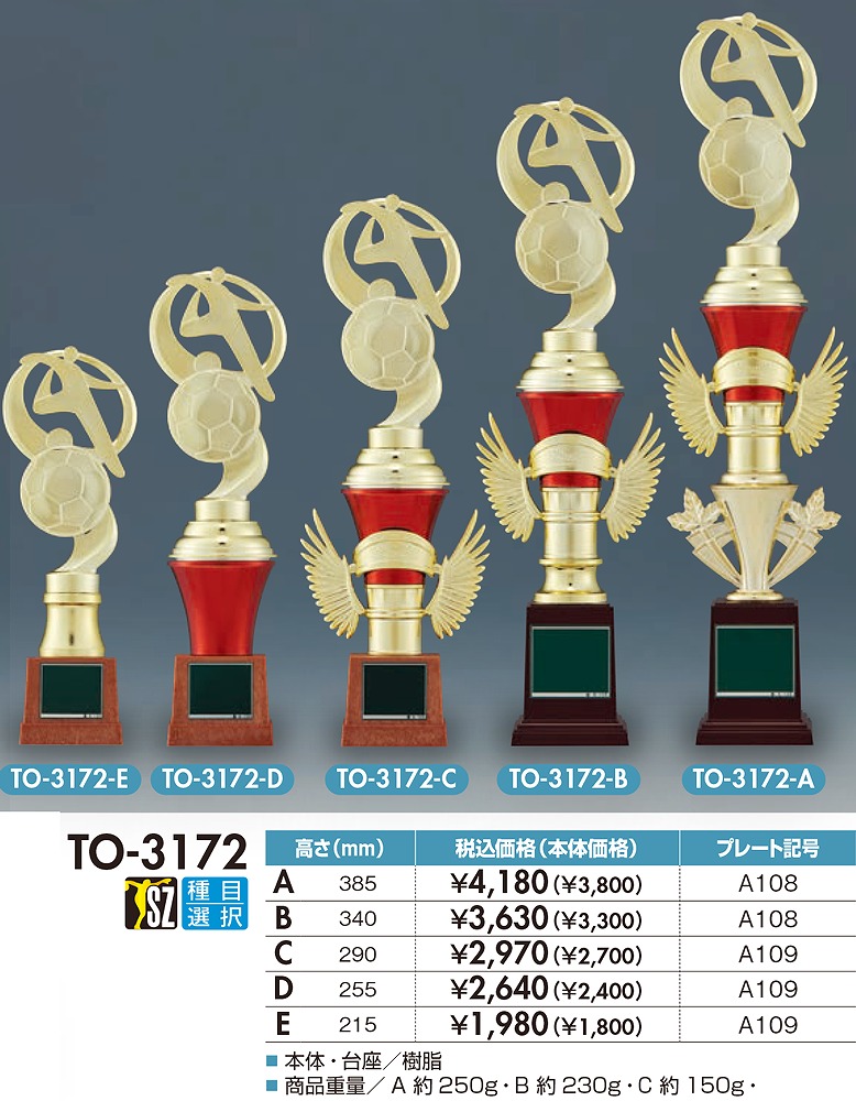 【トロフィーの価格構成】 (2)の人形の差額代は必要ありません レリーフはどの種類も同じ価格です