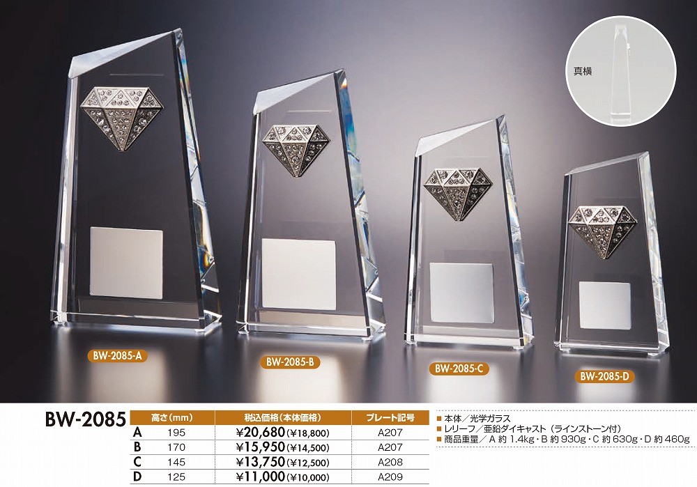 クリスタルトロフィー / ダイヤモンドレリーフ・ラインストーン付 BW-2085【30%OFF】【文字代無料】